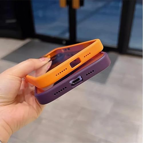 KEVGNRO Self-Contained Stand Silicone Case Cover for iPhone 12/13/14Promax, Lens Film Case with Mirror Protection Holder for iPhone (Orange,12promax)