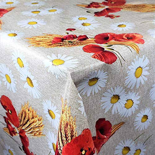 KEVKUS C146051 - Tovaglia cerata con motivo di papaveri e margherite a scelta in forma rettangolare ovale (bordo con nastro in plastica), 140 x 180 cm rettangolare)