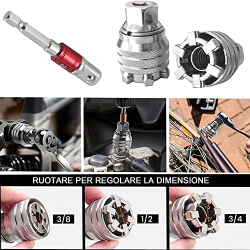 Strumento per kit super manicotti: questo strumento multifunzionale è adatto alla maggior parte dei dadi e dei bulloni;
