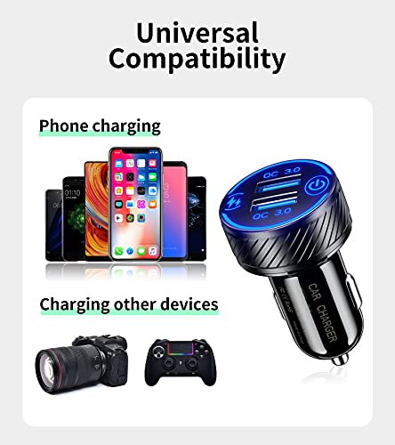 KEWIG Caricabatteria da auto, doppia porta QC3.0, adattatore per caricabatterie da auto, con LED blu e interruttore touch adatto per telefoni 12/11 Pro/Max/8, Galaxy S21/20/10/9