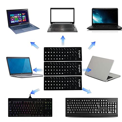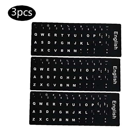 Keyboard Stickers Replacement English Non-Transparent with Black Background on White Lettering for Laptops Desktops 3PCS