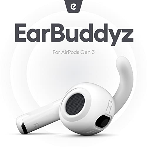 Keybudz EarBuddyz - Auricolari in silicone per Apple AirPods 3, accessori per auricolari, accessori per auricolari, gancio per orecchie, antiscivolo, sport, bianco, medio