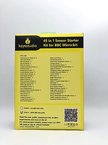 KEYESTUDIO BBC Micro:Bit Starter Kit con Scheda Microbit V2.2, 45 Moduli Elettronici, codice Tutorial per Principianti
