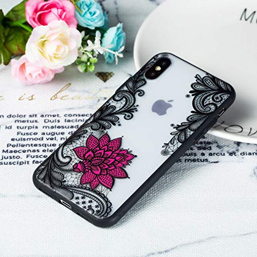 Keyihan Cover Compatibile con iPhone XS Max 6,5" Custodia Antiurto Nero Fiore Sollievo Pizzo Modello Traslucido Opaca Protettiva Case rigida Morbida TPU Silicone Paraurti (Nero Rosa caldo loto 2#)