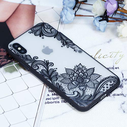 Keyihan Cover Compatibile con iPhone X e iPhone XS 5,8 Pollici Custodia Antiurto Nero Fiore Sollievo Pizzo Modello Opaca Protettiva Case rigida Morbida TPU Silicone Paraurti (Nero Paisley fiore)