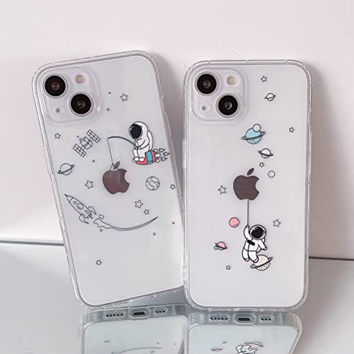 Keyihan Cover Compatibile con iPhone 13 Pro 6,1 Pollici Custodia Antiurto Trasparente Chiaro Disegni Modello interessante Flessibile Morbido TPU Silicone Protettiva Case (Astronauta appeso)