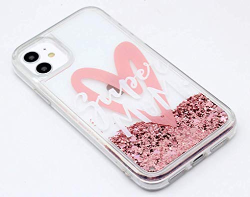 Keyihan Cover per iPhone 12 mini 5.4" Glitter Liquido Custodia Antiurto Trasparente Disegni Divertenti Brillantini Paillettes Protettiva Case Rigida Morbida Silicone Paraurti (Cuore Rosa Mom)