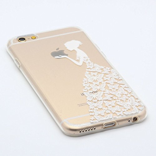 Keyihan iPhone 6 6S Custodia Cover Divertente Motivo Trasparente Morbido TPU Silicone Protettiva Caso per Apple iPhone 6/6S (4.7")(Principessa Gonna Farfalla Bianca)