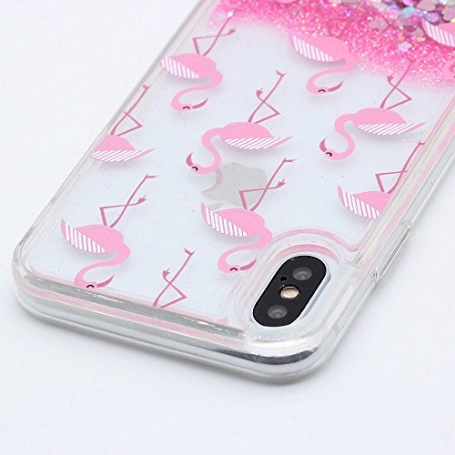 Keyihan iPhone X / XS Custodia Cover Liquido per Donna Ragazza, Carina Disegno Interessante Flowing Liquido Scintillio Sabbie Mobili Protettiva Caso per Apple iPhone X XS 5.8" (Fenicottero)
