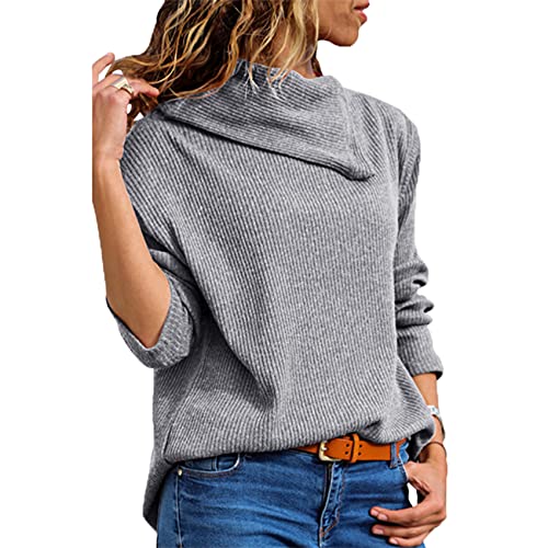 KeYIlowys Top in Maglia A Coste Larghe Asimmetriche con Risvolto Nuovo da Donna Autunno