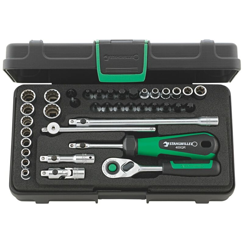 inserti per chiavi a bussola secondo DIN 3124. Quadri interni / esterni secondo DIN 3120. Uso: Per viti a esagono esterno / dadi con filettatura M2,5 - M8. Per poligono esterno Torx® con filettatura M3 − M8. Per viti a esagono incassato con filettatura M4 − M8. Per poligono interno Torx® con filettatura M2,5 − M8. Materiale: Acciaio al cromo, rivestimento NiCr resistente al distacco. Fornitura: Bussole con bocca poligonale: 10 pz. n. art. 630950 Dim. 5;