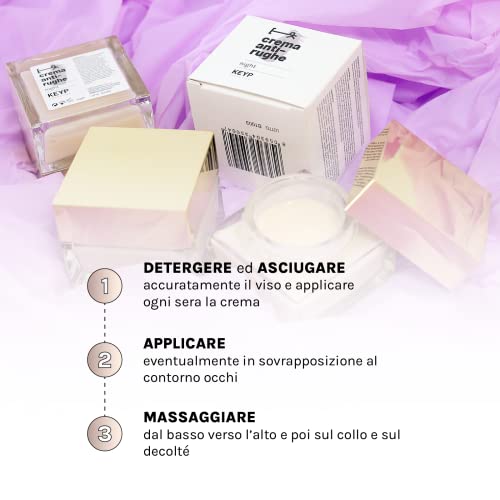 KEYP COSMETICS Crema Viso Notte Antirughe con Acido Ialuronico, Azione Idratante Anti-age Rigenerante e Antiossidante, Adatta a Pelli Sensibili, Made in Italy, 50 ml