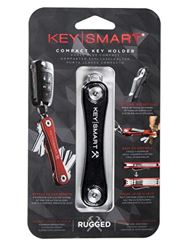 KeySmart Rugged - portachiavi multifunzione con apribottiglie e clip da tasca per le tasche (max. 14 chiavi, nero)