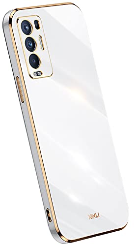 KEYYO Cover per Oppo Find X3 Neo, Custodia protettiva morbida TPU Silicone, placcatura bordo dorato ultra sottile, colore: Bianco