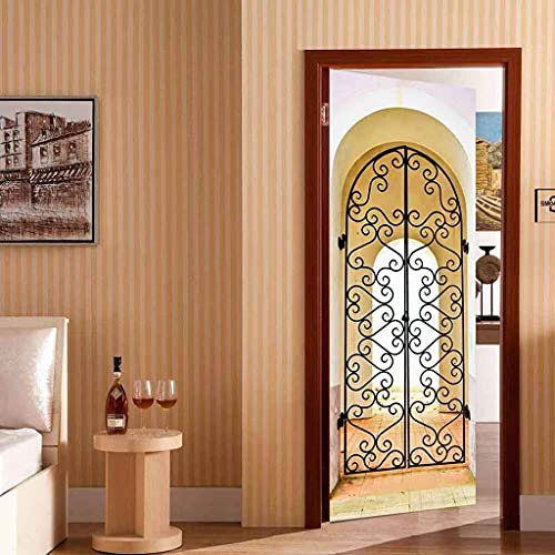 KFEOEA 3D Adesivo murale per Porte, Carta da Parati autoadesiva e Decalcomania per Porte in Vinile Rimovibile, 77x200cm cancello ad arco in ferro art Art Wallpaper Per Camera Da Letto Adesivo Per Port