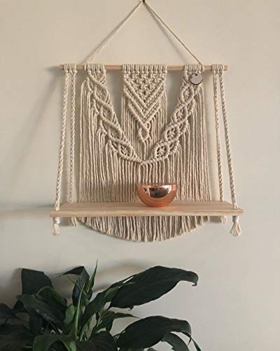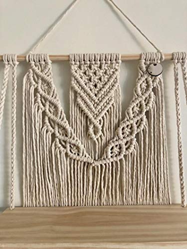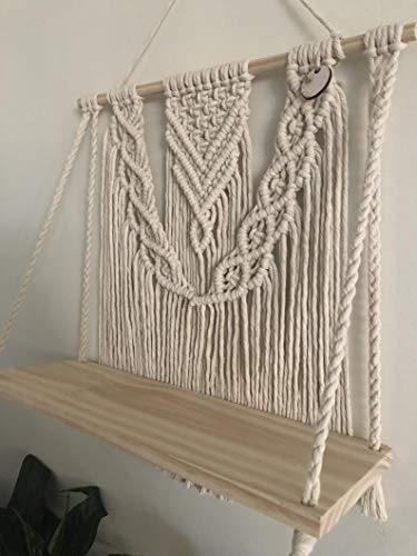KGBFDX Boemia in Legno Fatti A Mano Macrame Appeso A Parete Mensola Corda Arazzo Complementi Arredo Casa Fioriera Sospesa Mensola Galleggiante Organizzatore Portaoggetti Casa 40 × 50 cm, Beige