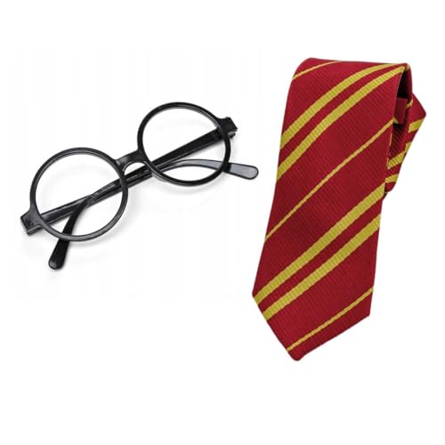 KGDUYC Cravatte e papillon bambini e ragazzi,Cravatta per costume da mago, occhiali rotondi neri di Halloween, occhiali senza lenti in plastica, accessori per costumi da mago per adulti e bambini