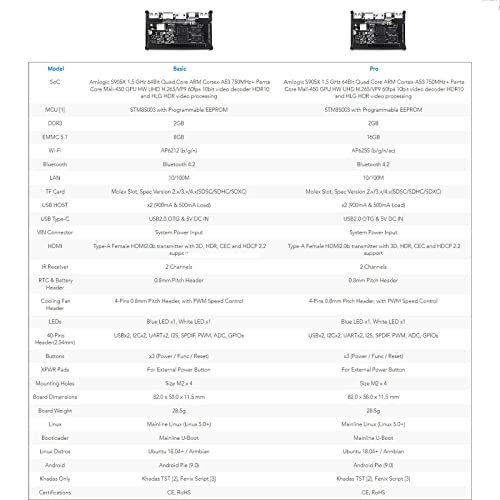 Khadas VIM1 Basic TV Box Scheda madre Single Board Computer ARM-Cortex DDR3 Amlogic S905X RAM GPU Mali-450, alimentazione USB Type-C, supporto USB 2.0 OTG, multi-OS, memoria integrata/Wifi