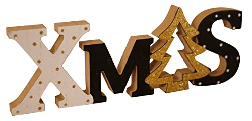Decorazione natalizia con scritta XMAS: La scritta XMAS è realizzata in legno. La "A" è rappresentata come albero di Natale. La scritta è disponibile nei colori moderni bianco, nero e oro.
