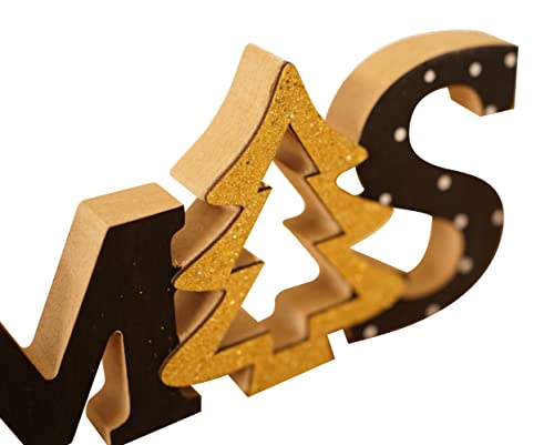Khevga Decorazione di Natale Lettering Xmas Father Christmas Decorazione da Tavolo in Legno di Natale (Nero)