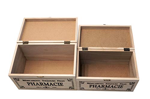 La scatola è in legno, calcinata in bianco. Splendida Scatola in stile antico. Il design nostalgico della scatola vi incanterà. La scatola ha scritta "médicaments Toujours Frais pharmacie” Sul coperchio della scatola di legno c'è una croce rossa verniciata. Il coperchio si chiude con una piccola cinghia in metallo.