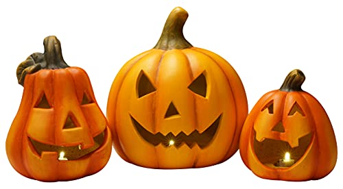 Khevga Zucca Deco Ceramica: Lanterna Autunno Set di 2 Decorazione di Halloween Illuminata con LED