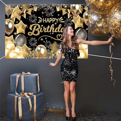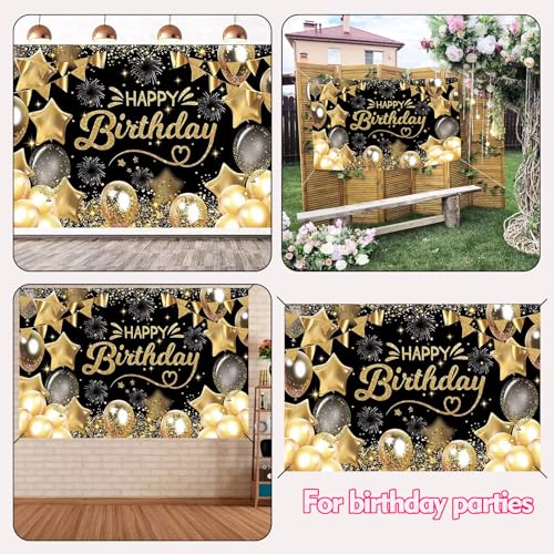 【Design Banner】: Lo striscione di buon compleanno è progettato in nero e oro con motivi classici di lettere d'amore, stelle, palloncini, bandierine e fuochi d'artificio per aggiungere un tocco impressionante alla tua festa di compleanno.