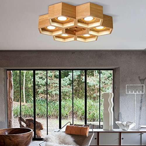 KHSKX Lampada da soffitto,Lampade alveari nordico lungo le luci a soffitto creativo moderno soggiorno camera da letto in legno massello di illuminazione arte