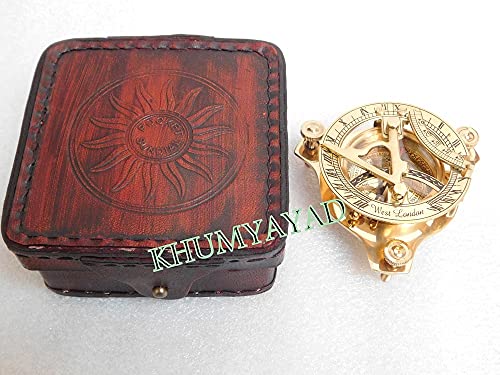 KHUMYAYAD Bussola nautica in ottone antico marittimo meridiana bussola con scatola in pelle