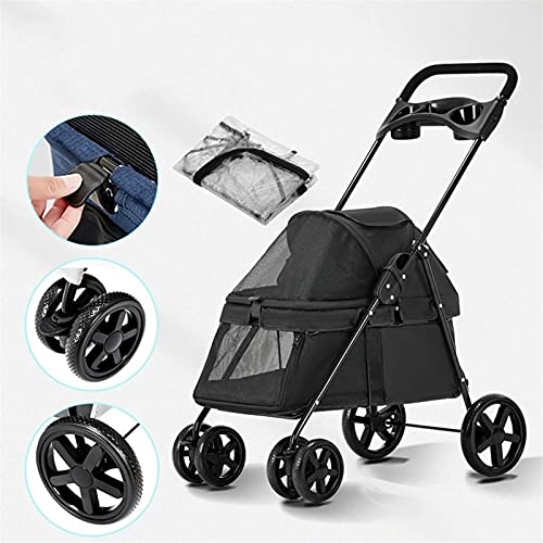 KHUY Passeggini per Cani Piccoli con Portabicchieri, Passeggino per Animali Travel-Cinghia Cane Gatto Passeggino Pram Passeggini per Cani Taglia Piccola Passeggino per Gatti Grandi (Color: Black)