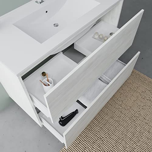 Kiamami Valentina MOBILE BAGNO A TERRA 60 CM BIANCO CON LAVABO | LAGUNA (100 cm, bianco)