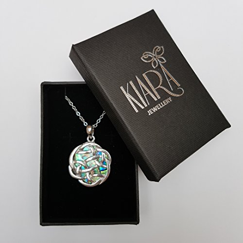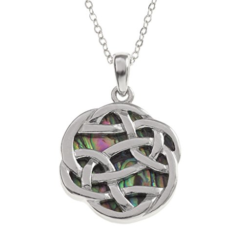 Kiara Jewellery - Collana reversibile con ciondolo a forma di nodo celtico intarsiato con conchiglia di abalone di paua verdastro, 45,7 cm, placcata in rodio di colore argento non ossidante.