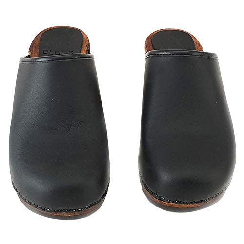Kiara Shoes Zoccoli Olandesi Classici - Cuoio Marrore/Nero Made in Italy - MY-573 (40 EU, Nero)