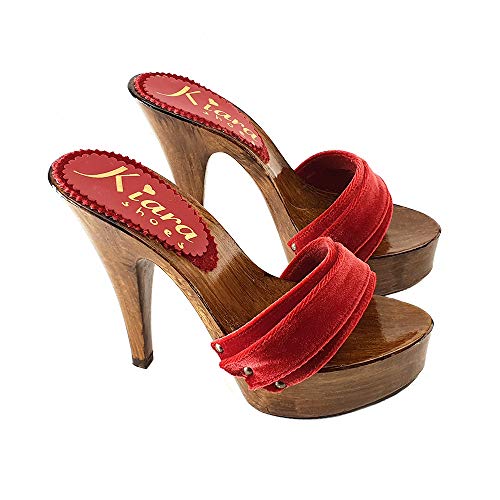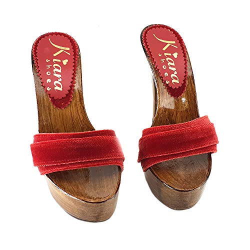 Kiara Shoes Zoccoli con Plateau e Fascia in Velluto - Made in Italy Tacco 13 - K9101-VEL-ROSSO (Rosso, Numeric_37)