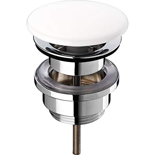 Kibath 171632 Valvola Clic Clac Universale Compatibile con la Maggior Parte dei lavelli in Ottone, Porcellana Bianca