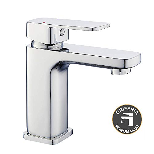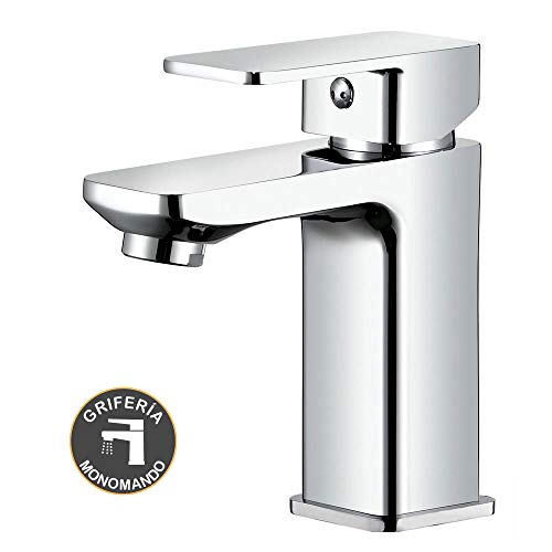 Kibath L152444 Rubinetto monocomando Che Design Stilizzato e Quadrato. Realizzato in Ottone e Finitura cromata Include raccordi, Tubi e Cartuccia. Ricambi garantiti, Cromo Lucido