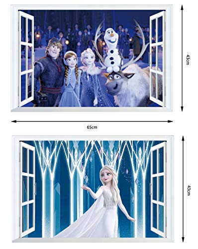 Kibi 2PCS Adesivi Muro Frozen Camera Da Letto Bambini Adesivo Muro Bambini Disney Adesivi Murali Cameretta Frozen Stickers Muro Frozen Stickers Muro Elsa e Anna Adesivo Da Parete Decorazione Da Parete