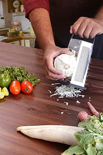 KICHLY grattugia Formaggio grattugia Verdure/affettatrice per la Cucina, Trituratore 6 Lati in Acciaio Inox con Manico in Gomma e Gomma Antiscivolo sul Fondo, 9,5 Pollici di Altezza
