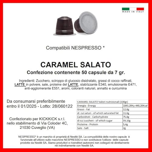 Kickkick Capsule Compatibili con Nespresso Caramello Salato (10PZ) Made in Italy Bevanda Calda per Macchina da Caffè Nespresso Cialde Toffee al Gusto Mou