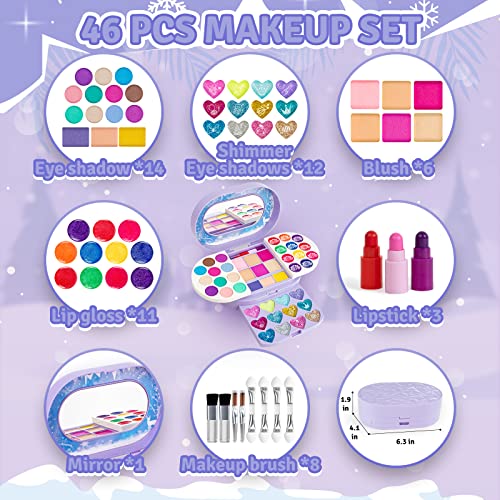 KIDCHEER 46 Pezzi Trucchi Bambina Aggiornamento Valigetta Trucchi Bambina, Lavabile, Colori Ricchi, Inclusi Ombretto, Fard, Rossetto, Lucidalabbra, Specchio, Pennello per 3-12 Anni Femmina-Viola