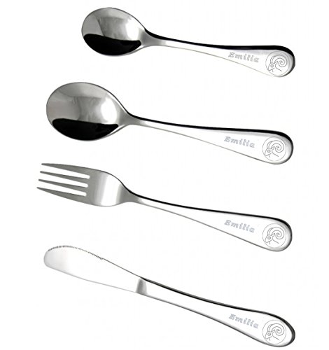 KIDDI-MEDIA Posate per bambini con incisione del nome e segno zodiacale / 4 pezzi (tutti e 4 incisi col nome) / acciaio inox/ARIETE