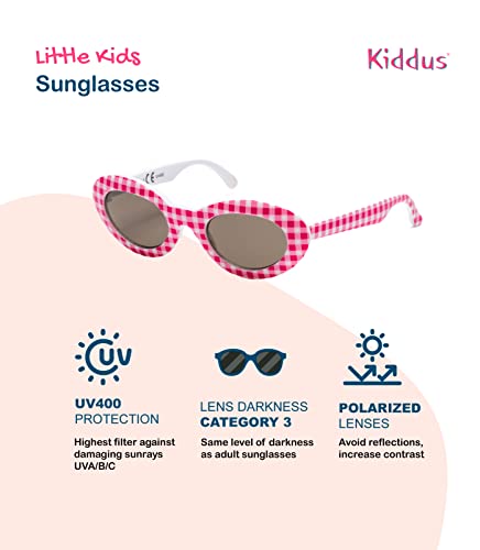 KIDDUS Occhiali da sole POLARIZZATI per bambini, ragazzi e ragazze. Da 8 mesi. Con Aste FLESSIBILI. UV400 100% protezione UVA e UVB. Sicure, confortevoli e resistenti agli urti. LITTLE KIDS (09 Vichy)