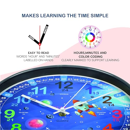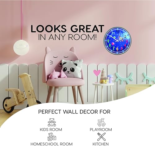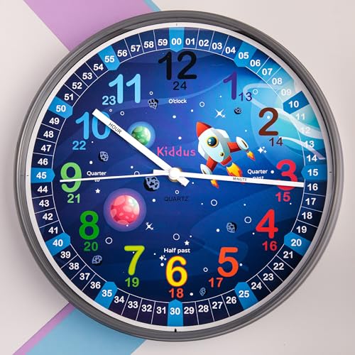 Kiddus Orologio da Parete Didattico per Bambini, Ragazzi. Analogico. Diametro 30cm. Con Esercizi per Imparare a Leggere l'Ora. Movimento al Quarzo Silenzioso.