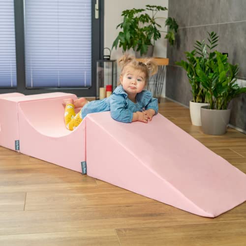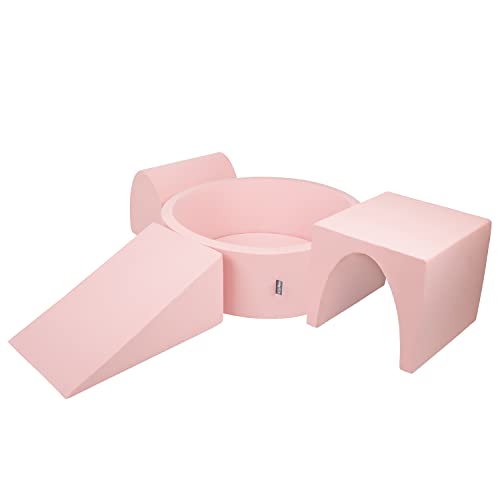 KiddyMoon Area di Gioco in Schiuma con Tondo Piscina di Palline (300) per Bambini, Rosa: Beige Pastello/Giallo Pastello/Bianco/Menta/Rosa Chiaro