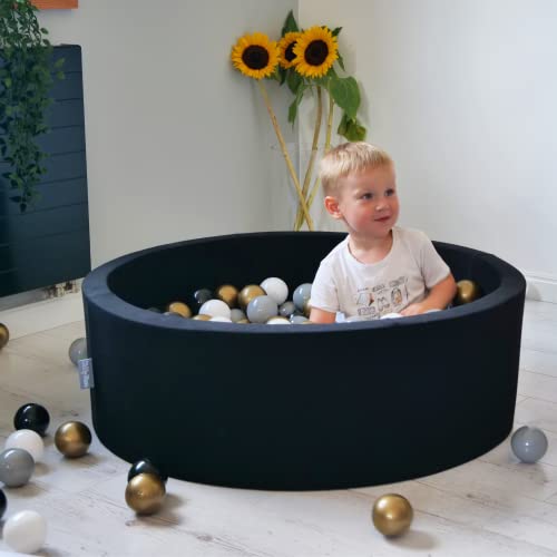 KiddyMoon 700 Palline/7Cm Palline Morbide Colorate Per Piscina Bambini Fatto In EU, Nero/Perla/Oro/Grigio
