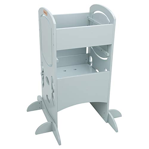 KiddyMoon Torre Di Apprendimento Monocolorata Per Bambini 99X48,6X46 Cm ST-002, Compensato Legno/Grigio