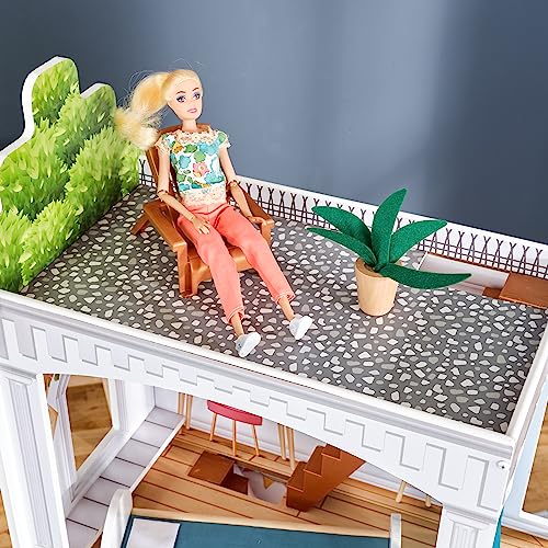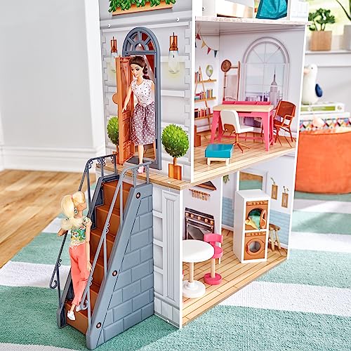 KidKraft Casa delle Bambole in Legno Rowan con Accessori e Mobili inclusi, Set da Gioco a 4 Piani con Terrazza sul Tetto per Bambole da 30 cm, Giocattolo per Bambini 3+ Anni, 10238