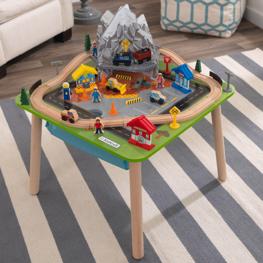 Dettagli del prodotto: Età: da 3 anni Alte montagne con binari per una corsa sfrenata Angoli arrotondati sul tavolo, per un divertimento sicuro Borsa portaoggetti al centro per tenere tutto in ordine Il coperchio reversibile al centro può essere rimosso in modo facile e sicuro grazie ai lati ritagliati Set di treni da 50 pezzi Dimensioni e peso: Dimensioni da assemblato (lunghezza x larghezza x altezza): 59,69 x 59,69 x 70,0 cm Peso: 7,48 kg Materiale e cura: Materiale: legno massiccio, plastica Cura: pulire la superficie con un panno umido.