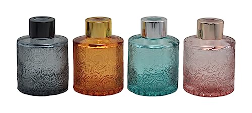 Cosa riceverete: 4 pezzi di bottiglie vuote per diffusori in vetro colorato (azzurro+arancio+rosa+grigio);