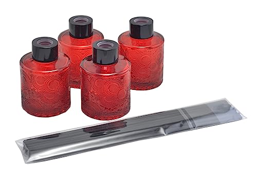 Kidlearn Set di 4 Bottiglie per diffusori di canne in Vetro colorato in Rilievo da 100 ml con 30 Bastoncini in Fibra (Rosso)